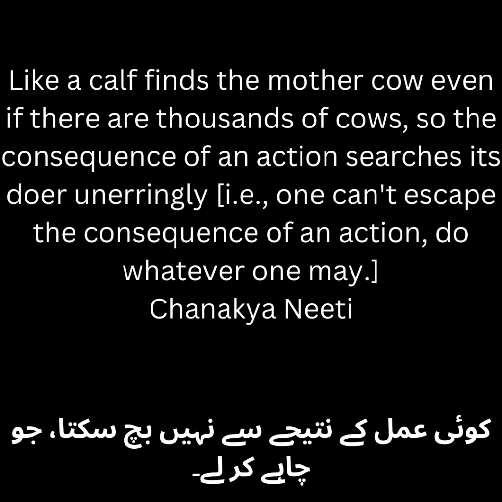 The result of an action searches its doer unerringly, just as a calf finds the mother cow even if there are thousands of cows [i.e., one cannot avoid the consequence of an action, do whatever one may.]